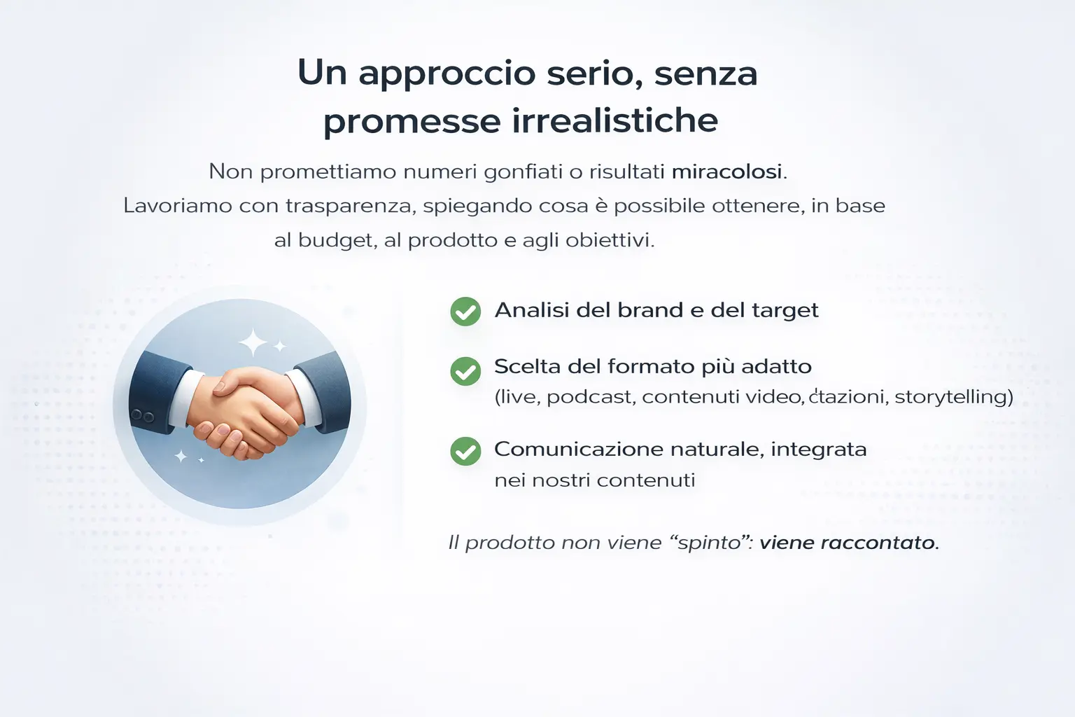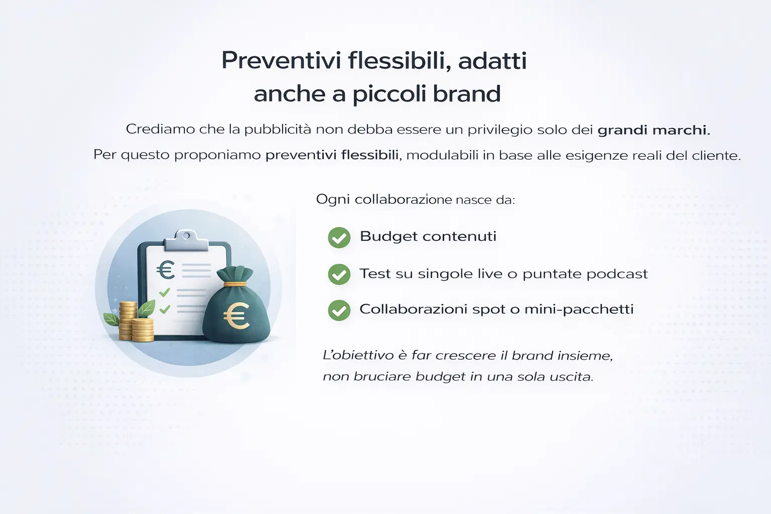 L’obiettivo è far crescere il brand insieme, non bruciare budget in una sola uscita.