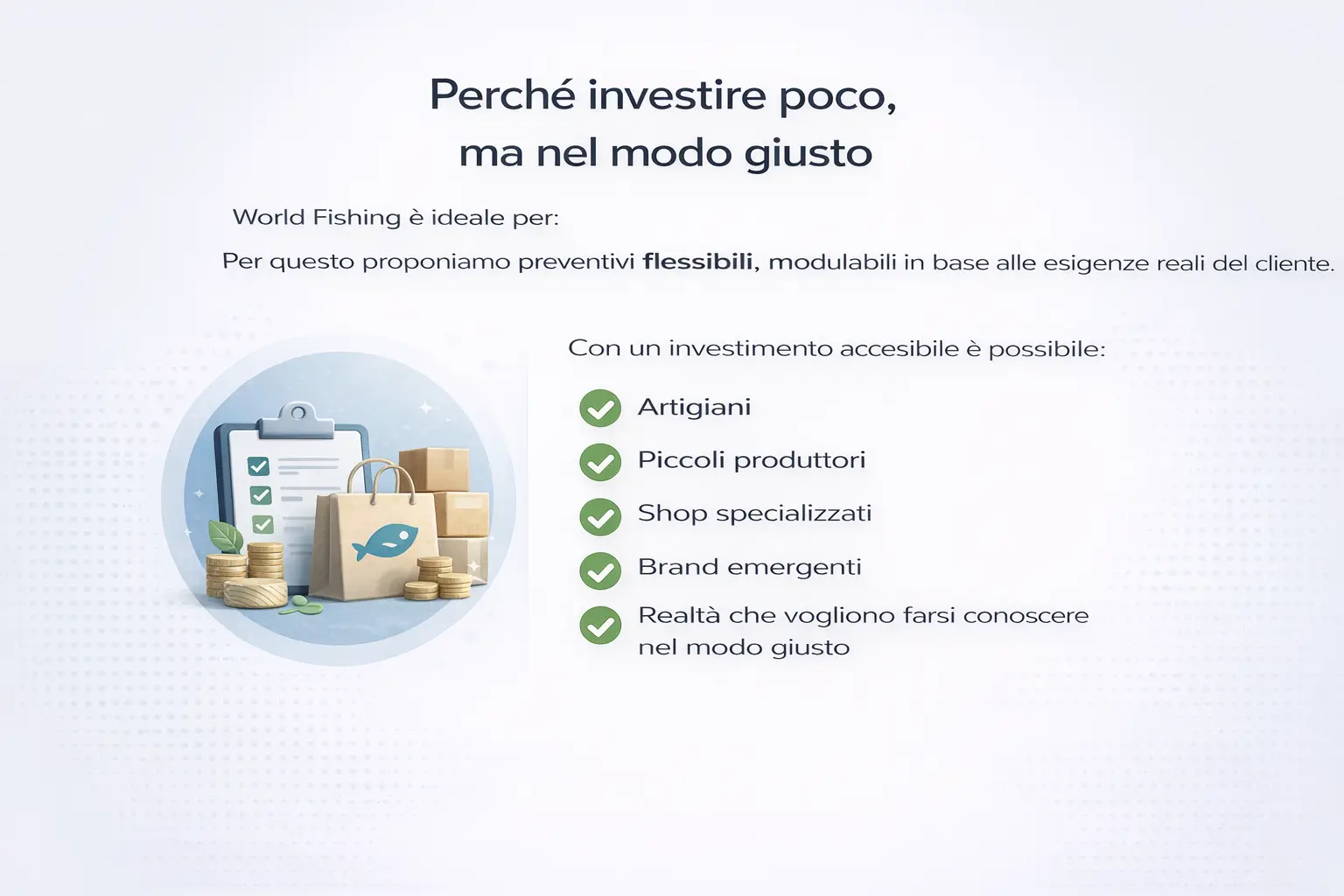 Per questo proponiamo preventivi flessibili, modulabili in base alle esigenze reali del cliente.